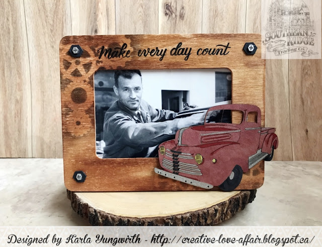 WOW! That is so Cool Karla! LOVE the wood frame and how you embellished it right up to look masculine! Perfect gift for any guy!