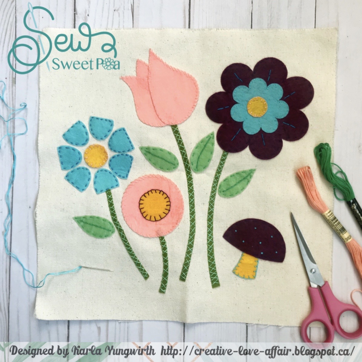 You can get the Flower Garden Applique Pattern FREE when you sign up for the Sew Sweet Pea Newsletter! The files come with fabulous PDF file resources explaining exactly how to applique and put together your beautiful Flower Garden!