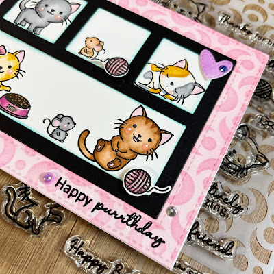I'm using the adorable new MINI MEWS Stamp Set and the beautiful FUNKY FLORAL Layering Stencil!