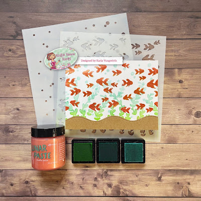 Check out RELAXALOTL! in so many amazing creations today as you hop around the Krafty Team's blogs! You'll also see the beautiful new stencils, SASSY SEASHELLS and the UNDERWATER SCENERY Layering Stencil along the way!